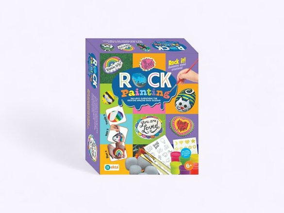 WHAT’S INCLUDED: 6 Large Rocks, 4 Glitter Glue Tubes, 12 Acrylic Paint Colors, 1 Paintbrush, 1 Foam Brush, 1 Tattoo Transfer Shect
