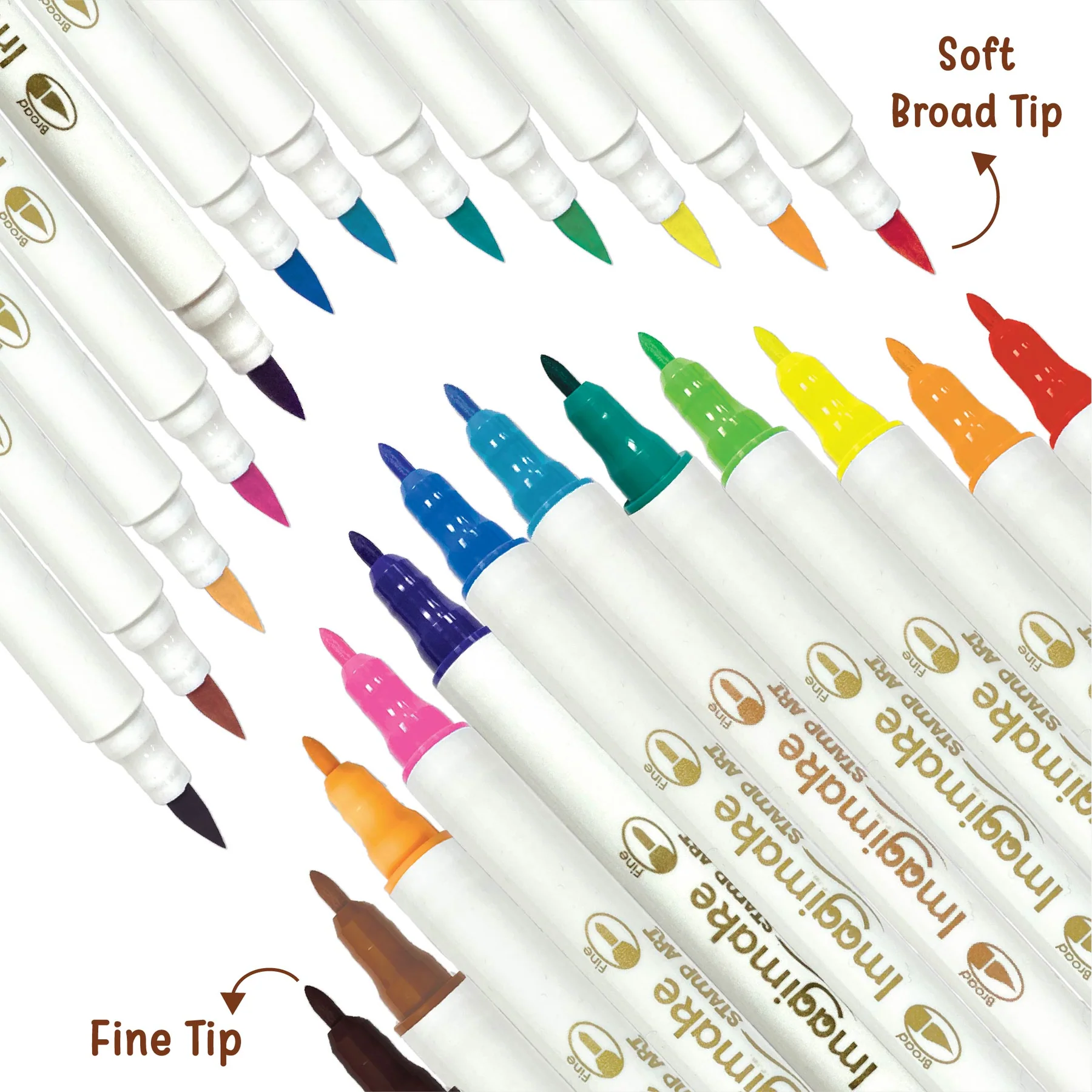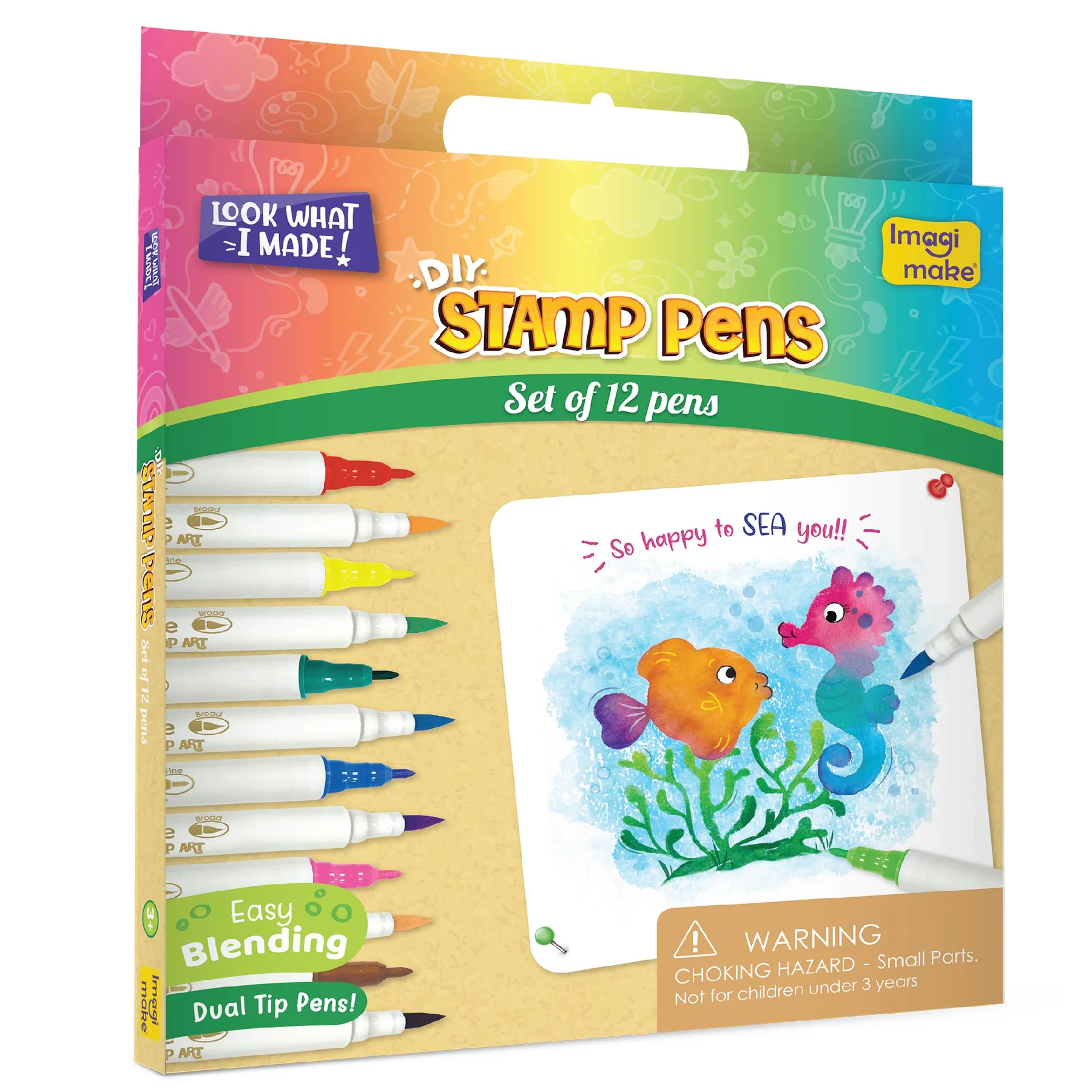 - DUAL TIP PENS: Imagimake Stamp Pen-Set Of 12 3 Years+ This Stamp Pen set comes with dual tip pens where one side has a fine tip and the other side has a soft & broad tip. The kids have a lot more control on their design and are able to use their imaginations to make lovely multi-coloured designs on the same stamp itself